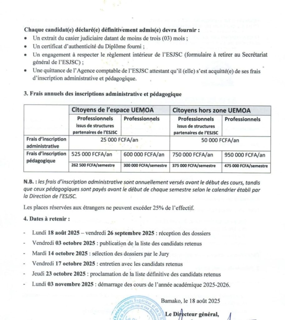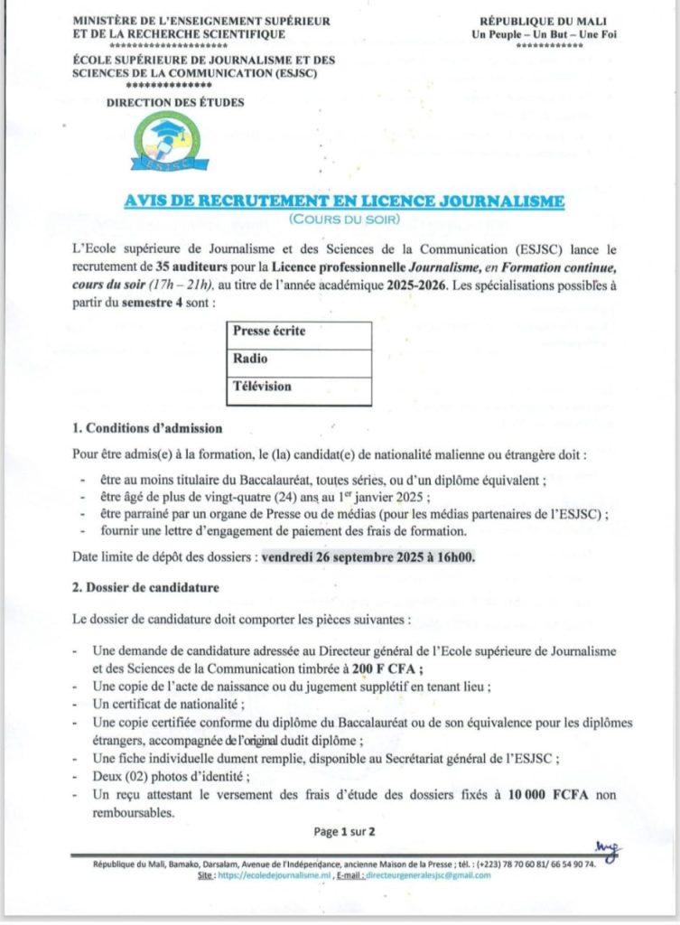 Ecole de journalisme et des sciences de la communication du Mali (ESJSC MALI)